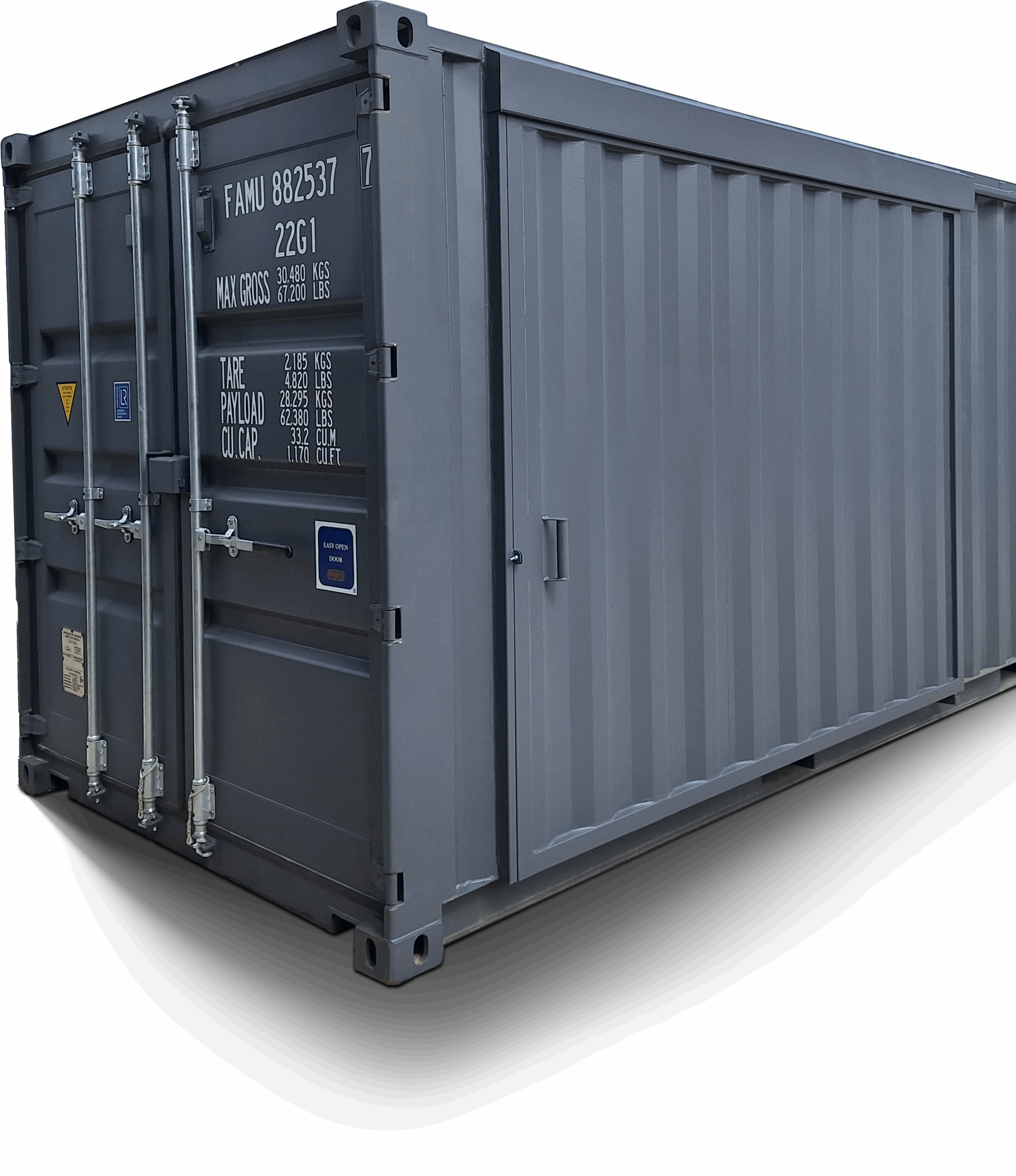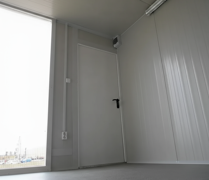Az osztott iroda-raktár konténer teljes alapterülete 14 négyzetméter, amit alapesetben 7 négyzetméteres iroda és 7 négyzetméteres raktár helyiségekre osztunk. Azonban a két elkülönített tér, az iroda és tárolóhelyiség aránya szabadon változtatható a konténer hosszában.